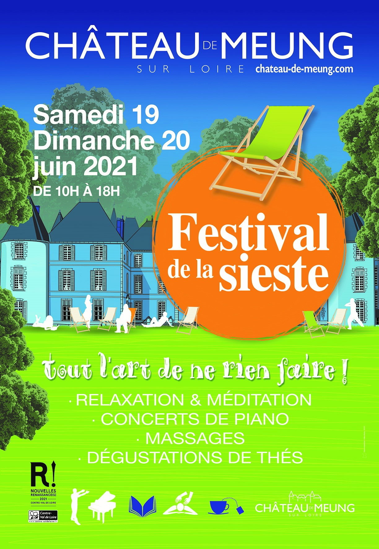Château de Meung-sur-Loiredu 19 juin 2021 au 21 juin 2021Le Festival de la Sieste Pour reprendre en douceur la visite des châteaux ou des musées…