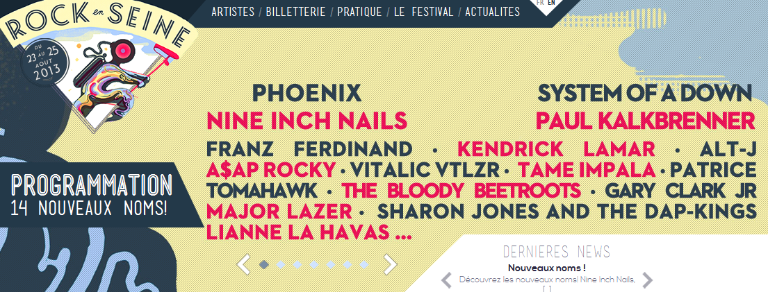 Comme tous les ans, dans le magnifique Parc de Saint-Cloud, au coeur de 450 hectares de verdures et des jardins dessinés par le célébrissime Le Nôtre, a lieu le festival de musique rock : Rock en Seine. Nombreux sont les souvenirs depuis sa création en 2003 dont la séparation inatendue du célèbre groupe Oasis dans les coulisses, qui a engendré l'annulation de leur concert en 2009.